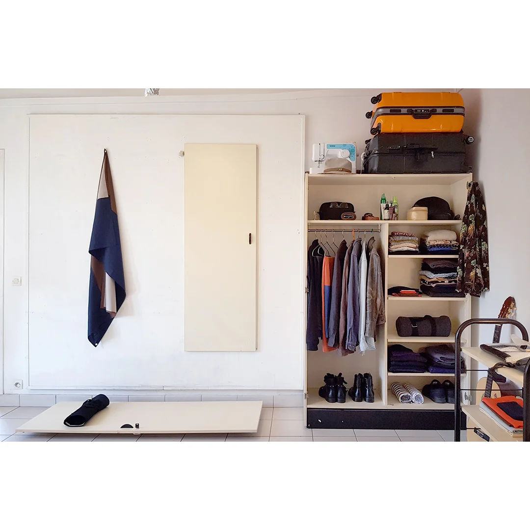 Joe Wilson & Chanelle Collier deliberately combined the function of their studio living space with its function as an atelier and makeshift gallery through an aesthetic ordering of artworks and everyday objects within the Cité des Arts apartment. This presentation is partly home décor in its significance to a sense of belonging and agency; and also, part territorialisation, where hanging flags claim the domain. Wilson & Collier utilise relational distinctions between art and life to think about boundaries, as border and threshold, to develop visual means that either punctuate or puncture these contextual frames.