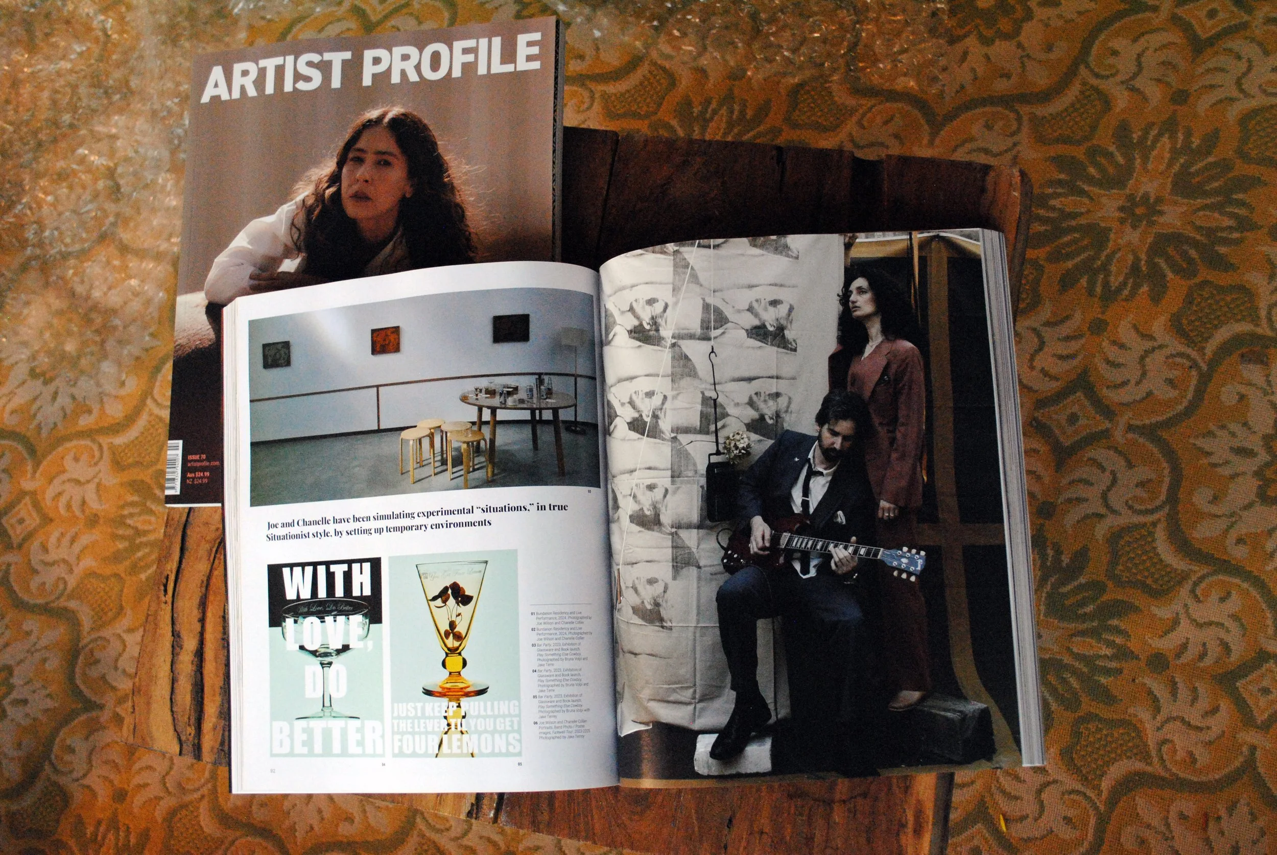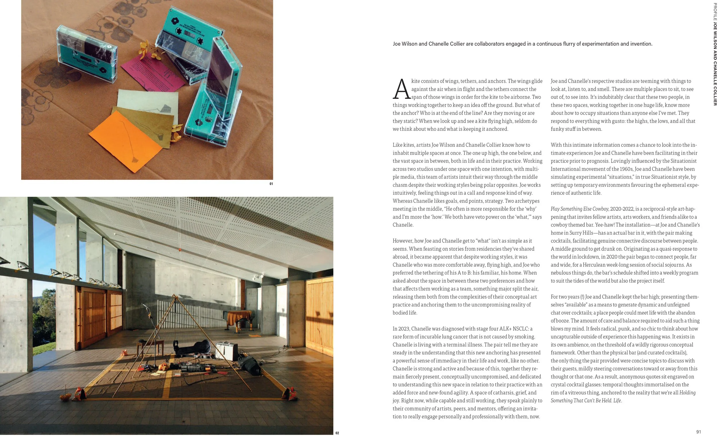 Combining art and life, their jam nights, kite flying , and cocktail partys, are as much a part of their practice as any traditional art form. This is a tactic of alternate exhibitioning and relational exchange. In galleries and institutions their exhibitions explore strategies of criticality and care. They place a high value on peer to peer engagement, prioritising agency and reciprocity amongst artists. Joe and Chanelle are influenced by the International Situationist movement 1960’s and contemporary media theory, evidenced through the use of vintage materials and combinations of found text and imagery. With a methodology of resistance, play, and gift giving, they are interested in the role of art in social change; and how artists are implicated within institutional power.