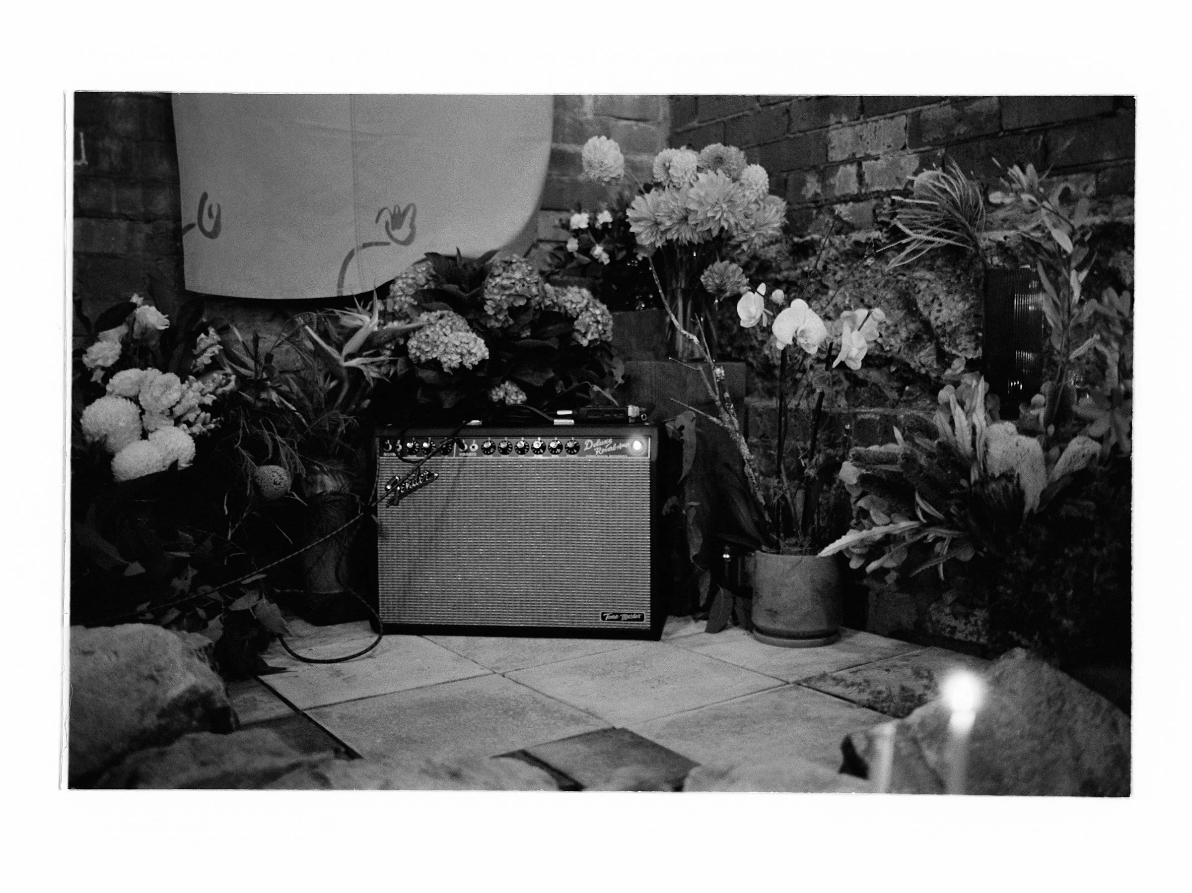 The exhibition includes visual objects related to sound; such as, gobos, painted records, and posters; acting as both merchandise and archival material. On opening night, a performance of ambient psych music, blending field recordings, guitar, and vocals, to express themes of love, death, and respite.