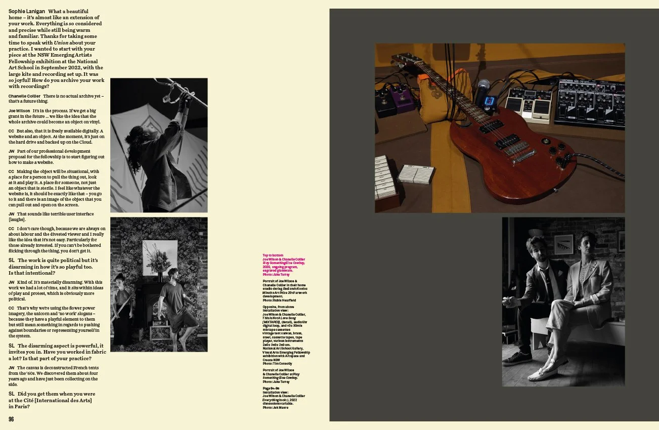 Joe Wilson and Chanelle Collier are artists based in Sydney. They share a conceptual practice making artwork using textiles and sound. They create audio-visual worlds for intimate experiences, wielding personal emotions of love and friendship, sincerity, and grief.