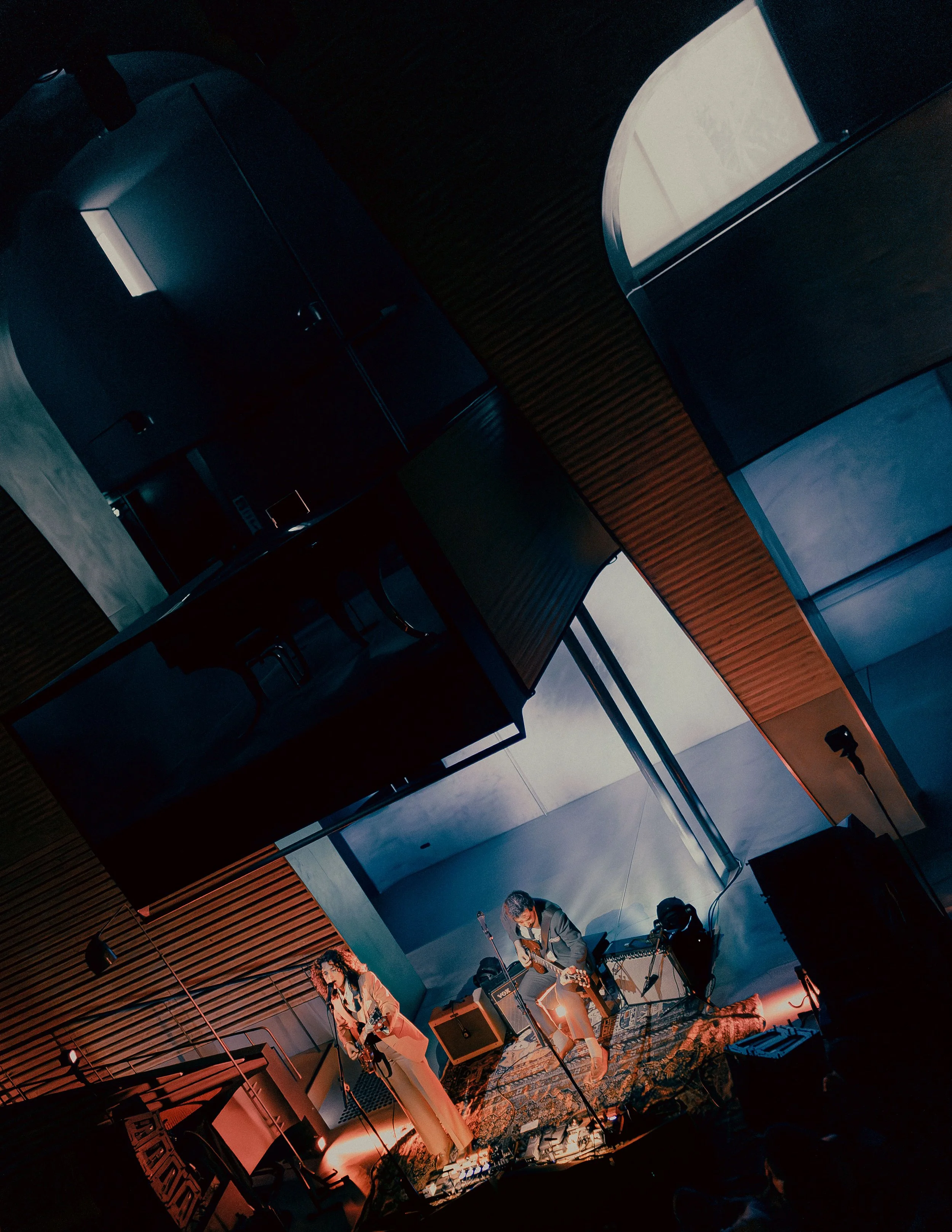 “This sound practice is a refuge. From grief, death, loss, imminent doom etc. It brings us into intimate contact with time because it's a space where each second is noticed, felt and responded to with care, through deep listening, not letting any one of them pass without being valued. This slows time and offers the desired respite by elongating the temporal distance between ourselves here now on the studio floor with our guitars and love and voices; and our eventual heartbreaking demise. A slowing down to go between us and death.”