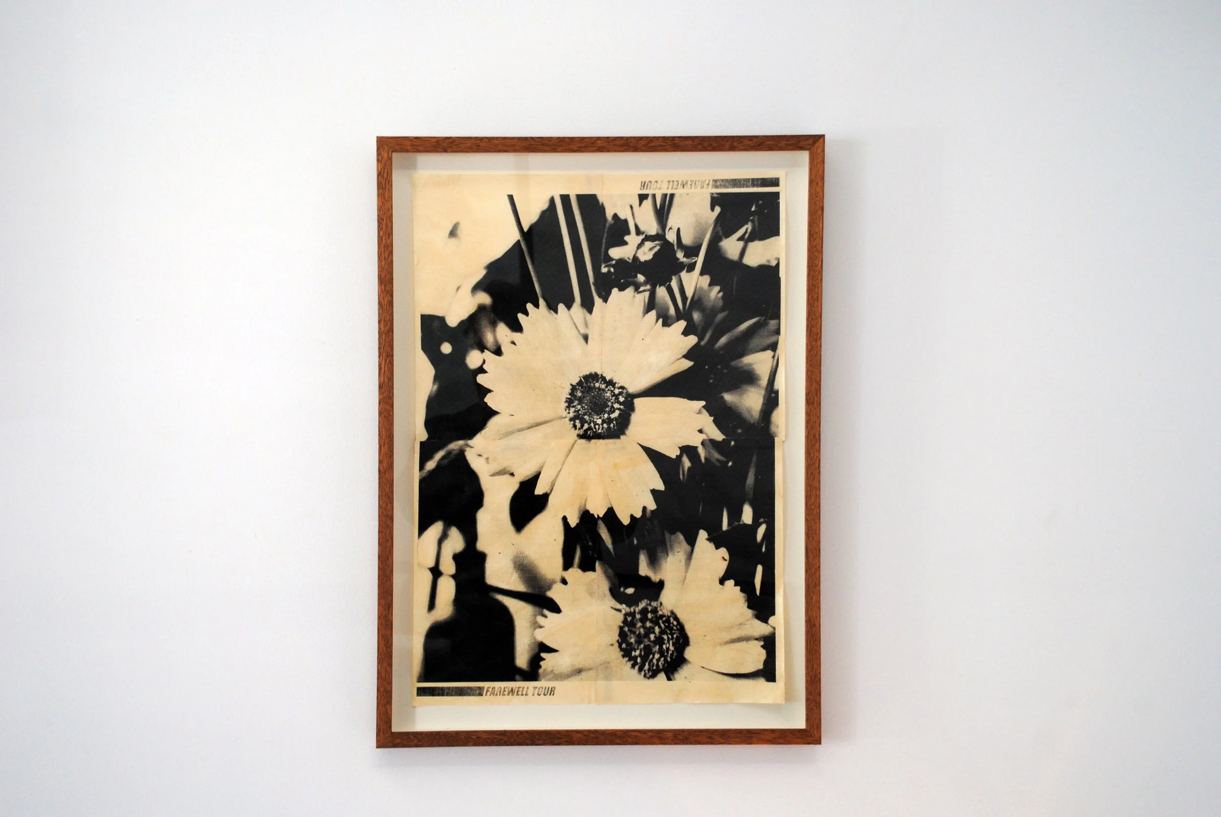 Farewell Tour engages visually in its own archive and memorabilia as an art project. The visual elements both come from, and contribute to, an archival history; incorporating documentary photos and performance ephemera to create a rich multi-layered band narrative. a "never-ending farewell tour" that invites viewers into the artist’s personal existential crisis. It addresses music as refuge and a way to slow time, using a vintage aesthetic with a "flower power" motif. Gobos serve as a practical and symbolic element, representing barriers and intimate spaces. The opening event is envisioned as an "order of service" blending a rock show, art exhibition, and memorial service.