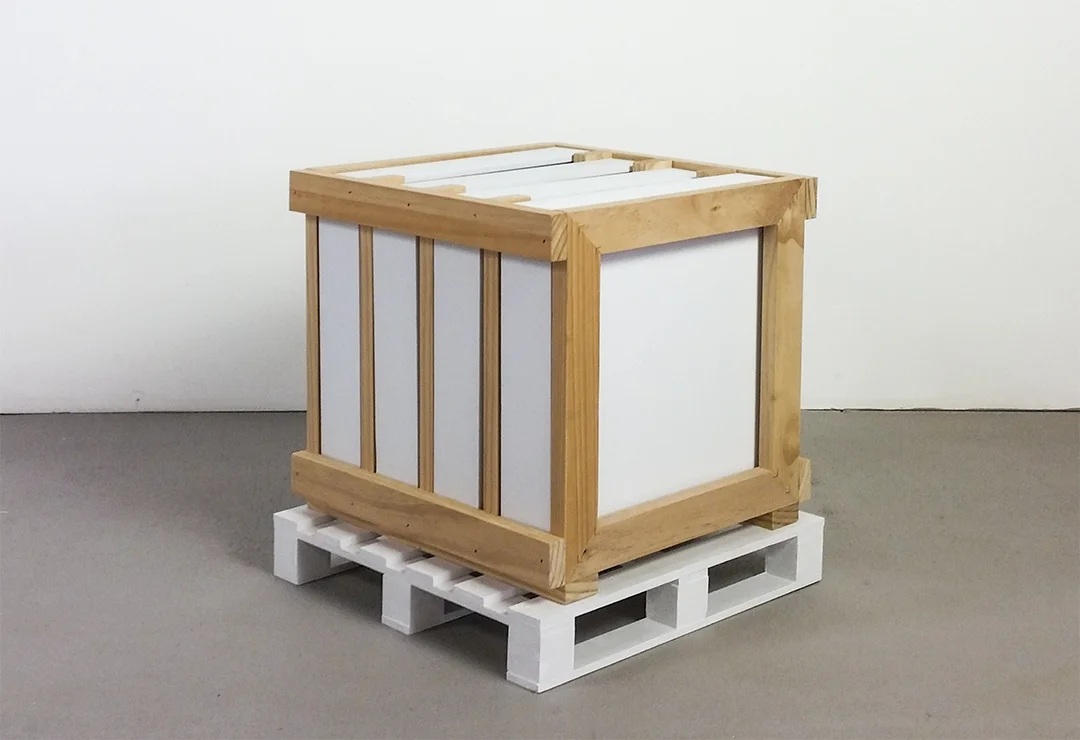 Painting Rack (Small),  2016. 36 x 38 x 37cm. Timber, acrylic on canvas. (+)  alette (White), 2017